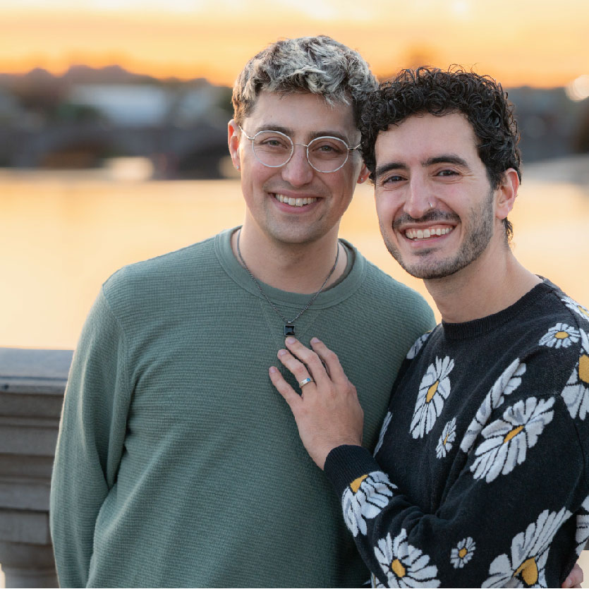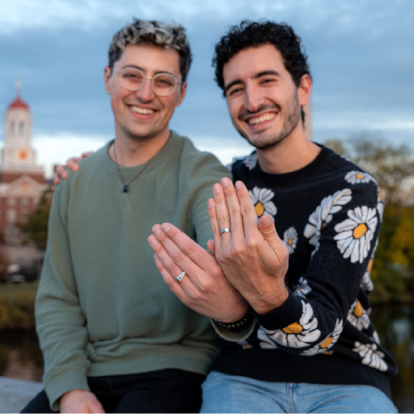 In Provincetown in August of 2024, Darius and Tom shopped for engagement rings at Exuma, a lovely jewelry store on Commercial St. When the rings finally came in the mail that November, Tom and Darius went on a walk to their spot on the Weeks Footbridge. The rest is history.